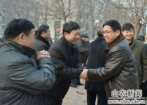 2月10日,农历蛇年大年初一,农大校园里张灯结彩,处处呈现浓浓的喜庆欢乐气氛。早上八点,学校领导张敬和、张宪省、董新胜、嵇景涛和教职工、离退休老同志们在夕阳红广场欢聚一堂,共庆新春佳节。