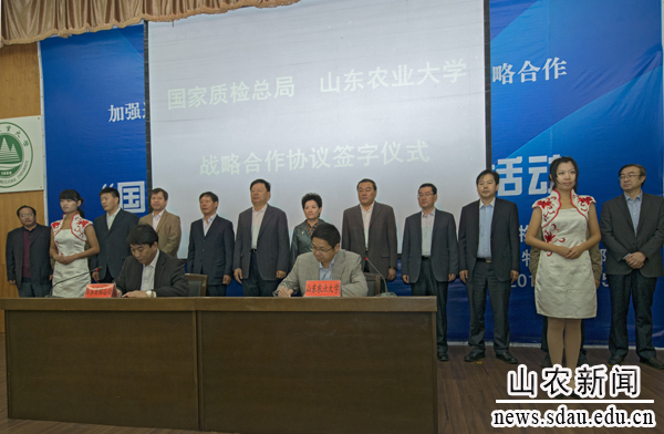 10月15日上午,国家质检总局与tyc1286太阳成集团加强进出境动植物及其产品检验检疫领域战略合作协议签字仪式在南校区举行。2013年山东检验检疫局“国门生物安全进校园”活动同时启动。国家质检总局副局长、党组成员魏传忠与有关司局长,山东检验检疫局、质量技术监督局负责人,泰安市政府,深圳检验检疫局、泰安检验检疫局、泰安市质量技术监督局负责人,tyc1286太阳成集团邢善萍、张宪省、嵇景涛等领导及有关部门和学院负责人出席活动。
