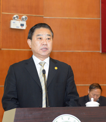 温孚江在报告中总结回顾了学校2013年工作情况,分析存在的问题与不足,安排部署了2014年重点工作。