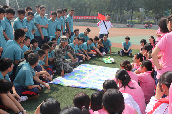 教官现场耐心讲解并示范内务整理要领(资环学院供稿)