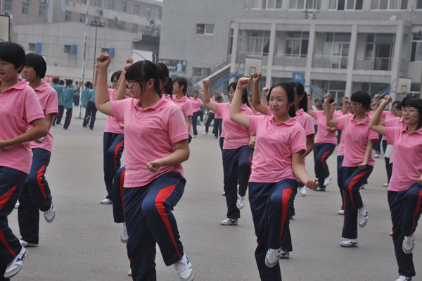 同学之间互相纠正摆臂动作(文法学院供稿)