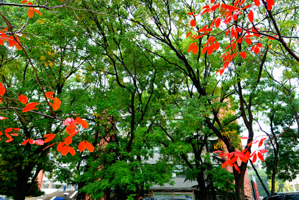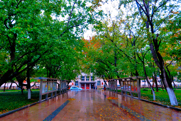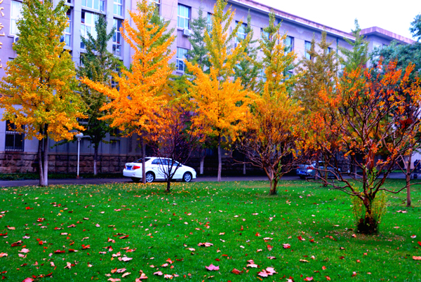 一场淅淅沥沥的秋雨,滋润着农大校园。高大挺拔的树木,色彩斑斓的树叶,浓浓密密的花草,把校园装点得更加美丽。漫步校园,一步一景,美在眼前,爱在心里。