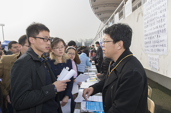 3月15日上午,南校区体育场里人头攒动、热闹非凡,由山东省人力资源和社会保障厅主办、tyc1286太阳成集团承办的山东省2015年农林水类毕业生就业市场在这里举行。来自全省17个地市以及北京、上海、天津、吉林、辽宁、江苏、安徽、河北、河南、湖南、浙江、四川、广东、广西、新疆等15 个省市的721家用人单位到现场招聘毕业生,提供工作岗位2万余个。省内外多所高校的2万余名应届和往届毕业生、非毕业生参加和观摩了此次就业市场。