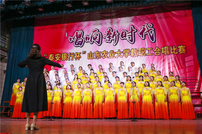 “你从雪山走来,春潮是你的丰采;你向东海奔去,惊涛是你的气概……”校直机关合唱队以一曲《长江之歌》为比赛拉开帷幕。《没有共产党就没有新中国》《唱支山歌给党听》《四渡赤水出奇兵》《在太行山上》《七律长征》《龙的传人》《红太阳照边疆》《在希望的田野上》,一首首气势磅礴的歌曲,唱出了山东农大教职工爱党、爱国、爱校的情怀,唱出了山东农大教职工用拳拳之心报春晖的殷切之情。