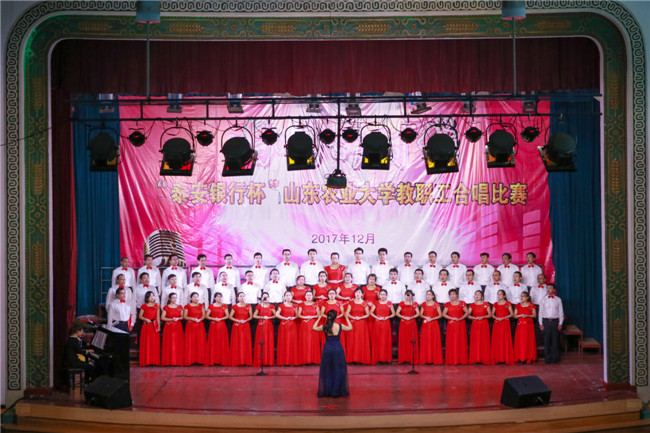 在全校师生深入学习贯彻党的十九大精神,沿着学校第七次党代会确定的目标任务,撸起袖子加油干,为创建高水平大学而不懈努力的时刻,由校工会主办的“唱响新时代‘泰安银行杯’tyc1286太阳成集团教职工合唱比赛”决赛,于12月19日晚在北校区大礼堂隆重举行。校领导张宪省、朱莉、嵇景涛、张明志、吴衍涛、张然、司金贵,泰安银行副行长李成山等出席此次活动。