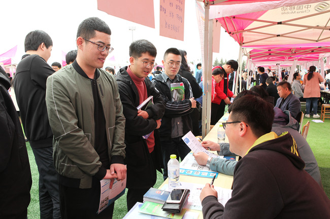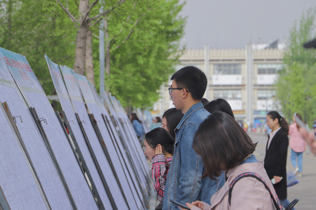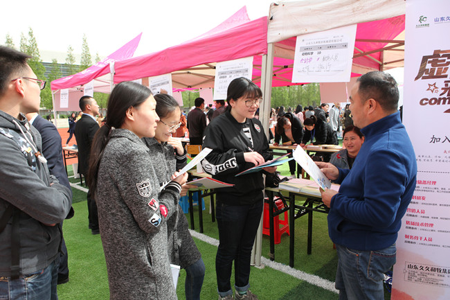 与以往的就业市场相比,本次就业市场增添了不少“高、大、上”的元素。据学工处处长王群介绍,参加本次招聘的企业中,共有上市企业18家、国有企业87家、外资企业11家、中外合资企业23家,仅这部分企业就提供就业岗位5900余个。另外,德州市人社局、泰安高新区人社局和诸城农业局等3家人社部门分别组团带领企业参加就业市场,泰安市人社局还专门组织人员对泰安市吸引人才的政策进行了宣讲。这些无疑都会为毕业生找到“好工作”增加更多的底气。