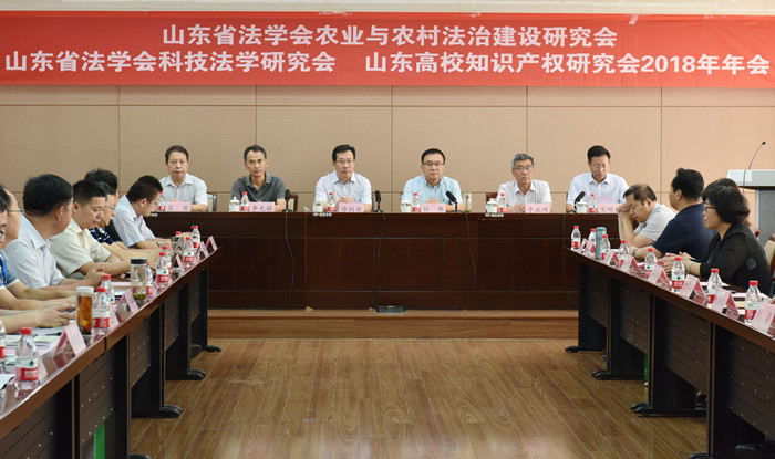 近日,山东省法学会农事法研究会、山东省法学会科技法学研究会、山东高校知识产权研究会2018年年会暨“乡村振兴法治与科技体制创新”研讨会在太阳官网举办。学校党委书记、省法学会农事法研究会会长徐剑波出席会议并致辞。省法学会专职副会长兼秘书长任伟,省法学会科技法学研究会会长李光禄,山东高校知识产权研究会会长于正河、省法学会综合部副主任吴岩等出席会议。