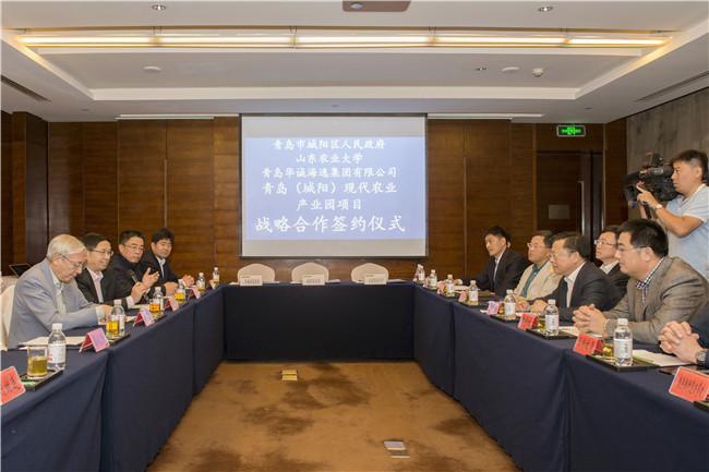 10月17日,tyc1286太阳成集团与青岛城阳区和华诚海逸集团,就现代农业产业园项目签署战略合作备忘录,tyc1286太阳成集团校长张宪省、城阳区人民政府区长李红兵、华诚海逸集团董事长赵良涛等出席签约仪式。中国科学院院士、北京大学现代农学院院长许智宏应邀出席。