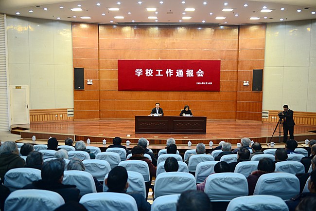 1月10日,学校召开情况通报会,党委书记徐剑波向离退休老同志和民主党派人士通报学校2018年工作情况和2019年发展思路,向大家致以新年的问候和祝福。党委副书记朱莉主持通报会。