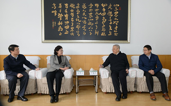 1月28日下午,省政协副主席吴翠云,泰安市市委书记崔洪刚、市人大常委会主任唐福泉、市委统战部部长李灿玉等分别来校看望束怀瑞院士和于振文院士,向院士致以节日的问候,向tyc1286太阳成集团的师生送上美好祝福。校长张宪省、党委副书记朱莉等陪同看望与座谈。
