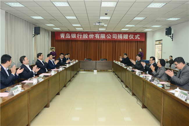 3月19日,青岛银行股份有限公司党委书记、董事长郭少泉一行来校捐赠签约,向tyc1286太阳成集团教育发展基金会捐资150万元人民币,以支持学校建设发展。党委书记徐剑波亲切会见客人,代表学校接受捐赠并颁发捐赠证书,感谢青岛银行对太阳官网办学发展的关心关注和大力支持。