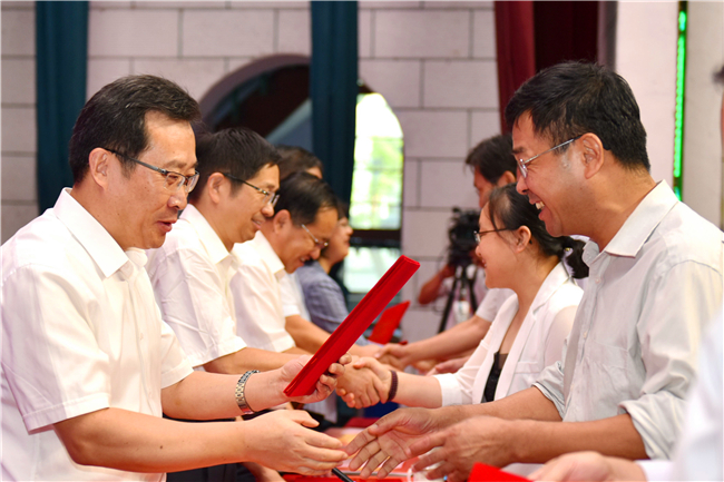 党委徐剑波出席典礼并为获奖代表颁奖,校长张宪省讲话,校领导杨天梅、嵇景涛、张明志、吴衍涛、张然出席典礼,副校长司金贵主持典礼。