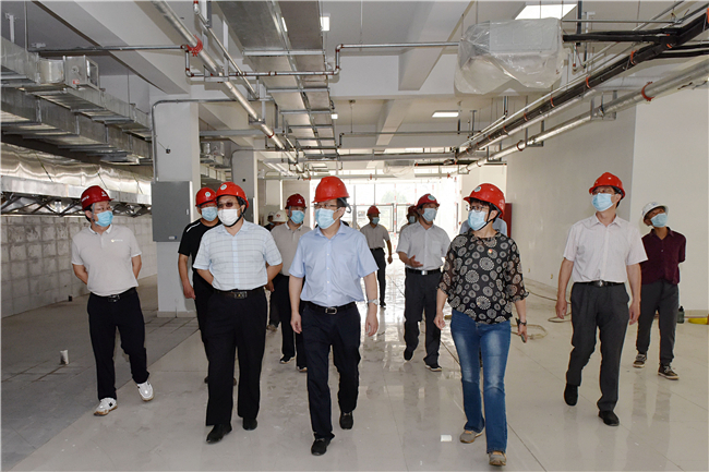 在教室、学生公寓、餐厅等项目施工现场,徐剑波与现场负责同志边走边聊,听取关于建设情况的汇报,仔细查看各个楼宇内部设计布局和具体设施安装情况,详细了解项目建设进展情况、具体使用功能,关切询问施工建设中存在的困难和下一步工作计划,叮嘱大家要随时沟通交流,及时发现、解决出现的问题,嘱咐一线工程人员要注意适当休息,保持好的工作状态。