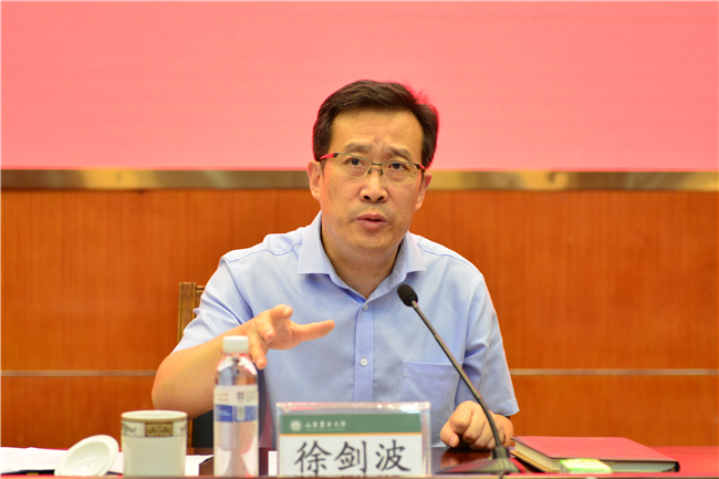 徐剑波指出,面对推进“双一流”建设,加快高质量发展的艰巨任务,面对制约学校发展的短板问题,必须传承和弘扬“十年磨剑”的山农品质。要在“制范”上下功夫,集全校之力、汇众人之智,科学编制新五年规划,描绘好新时代山东农大版的“十年磨剑路线图”;要在“熔炼”上下功夫,吃透政策、跟踪变化、精准发力,集合各学科的平台、人才、成果等资源,深入推进“双一流”建设,力争在第五轮学科评估中取得优异成绩,实现国家一流学科的历史性突破;要在“修治”上下功夫,坚持以政治建设为统领,加强党对学校工作的全面领导,充分发挥党建工作的统领作用,营造风清气正的政治生态和发展环境,让每项工作都能从现有水平迈向更高水平,实现综合实力的整体跃升,在建设高水平大学的道路上走得更快、更稳、更好。