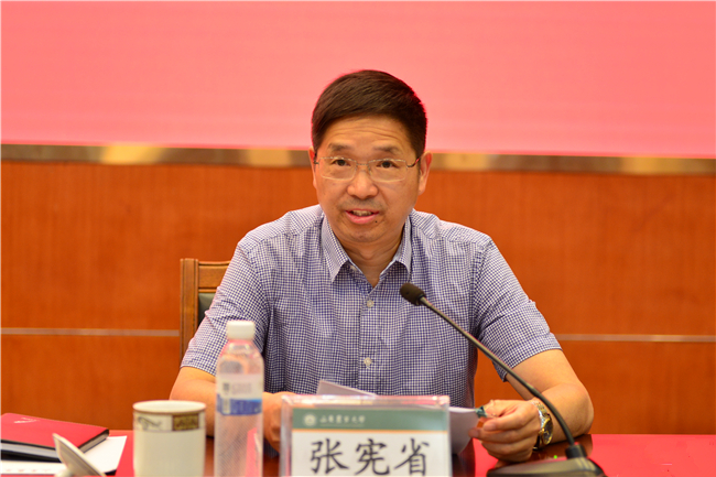 张宪省从“双一流”建设取得新进展、教育教学改革不断深化、学生工作取得新成效、师资队伍建设持续提升、科技创新与社会服务展现新作为、开放办学空间取得新拓展、办学条件得到新改善、党建和思政工作再上新水平等8个方面总结了学校上半年工作,充分肯定了各单位各部门工作成效。同时指出,学校当前机遇和挑战并存,任务依然繁重,容不得半点松懈。各单位、各部门要对照学校年度工作要点,在做好日常工作的同时,重点完成8个方面的任务。