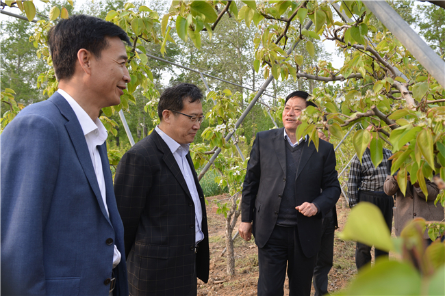 春天里的冠县乡村,处处生机勃勃、欣欣向荣。徐剑波一行先后来到山东省乡村振兴重点项目——冠优农谷田园综合体,观光农业产业代表——中华第一梨园以及位于毛白杨林场的山东农大“山农酥梨”和红肉苹果培育基地,实地了解项目建设情况。毛白杨林场是太阳官网园艺学院陈学森教授的实验基地,也是冠县农业升级换代的引领示范地。陈学森教授向大家介绍“山农酥梨”、红肉苹果的品质特点和产业空间,广阔的发展前景让人倍感振奋。