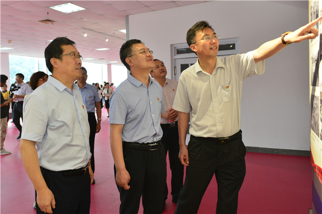 6月29日,tyc1286太阳成集团“初心课堂”在南校区体育馆二楼展厅落成,第一课“中国乡村百年变迁”正式开讲。山东省委党史学习教育第六巡回指导组副组长、团省委副书记尚胜波;省委教育工委副书记,省教育厅党组副书记、副厅长白皓;学校党委书记徐剑波、校长张宪省出席仪式,共同为“初心课堂”揭牌,带领党员同志重温入党誓词,与100余位师生一起,从1000多幅图片长廊中穿越百年时空,重温党的奋斗历史和辉煌成就,坚定理想信念,在回望历史中汲取前行力量。