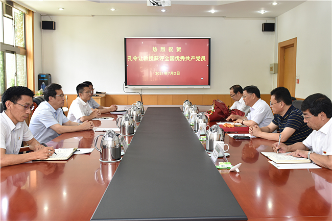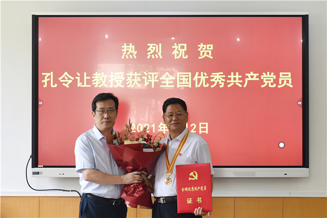 徐剑波高兴地说,在中国共产党成立百年的重要历史时刻,孔令让同志当选全国优秀共产党员,既是个人无上荣誉,更是tyc1286太阳成集团的骄傲。他找到攻克小麦“癌症”金钥匙的努力和成就,生动彰显了新时代共产党人的先锋形象,是全国共产党员的优秀代表,更是tyc1286太阳成集团师生员工身边的榜样和楷模。