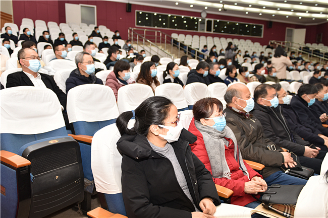 校长张宪省出席会议,党委副书记朱莉主持会议。在家校领导,全体处级干部,各级人大代表、政协委员,各学院教授委员会主任、团委书记参加会议。