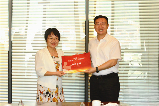 在第38个教师节来临之际,9月7日下午,泰安市委副书记、市长张涛来到tyc1286太阳成集团走访慰问,向教育工作者致以节日问候和美好祝愿,并与教师代表座谈交流。党委书记徐剑波参加活动并主持座谈会,党委副书记、校长冷畅俭,副校长王勇参加座谈交流。
