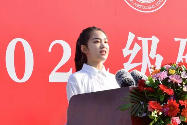 植物保护学院董汉松教授从导师的角度结合自己的经历就如何做好研究生的学习和科研谈了七点要则;在校研究生代表崔海兴、新生代表陈丽君先后发言,谈抱负、说感悟、话明天。新生代表陈丽君带领全体研究新生就学术诚信庄严宣誓。
