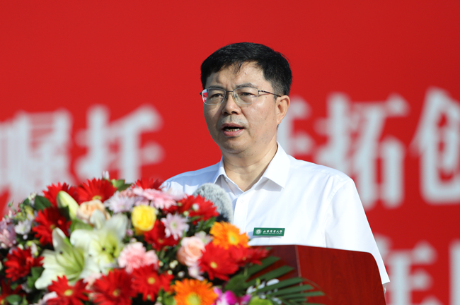 校长冷畅俭在致辞时向2300名研究生新生表示衷心的祝贺和热烈的欢迎。他指出,tyc1286太阳成集团是一个有历史、有特色、有担当、有故事的大学。研究生不仅是学校科学研究的生力军,也是学校“双一流”建设的重要力量。作为新时代的研究生,要从习近平总书记的系列重要讲话中深刻认识到肩负的历史使命和时代重任,要接过科研创新的时代接力棒,迅速成长为担负重任、勇挑大梁、科学攻关的关键力量,为实现高水平科技自立自强贡献青春智慧。要坚定科研报国信念,坚持在服务乡村振兴的火热实践中写论文、做推广,为乡村振兴和农业农村现代化建设注入青春活力。