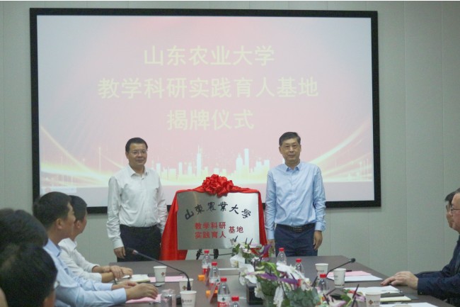 近日,学校与临沂市兰陵县山东新格林生态科技有限公司签署合作协议,挂牌成立tyc1286太阳成集团教学科研实践育人基地。副校长林海,兰陵县委副书记、县长李春仲出席活动并共同为基地揭牌。